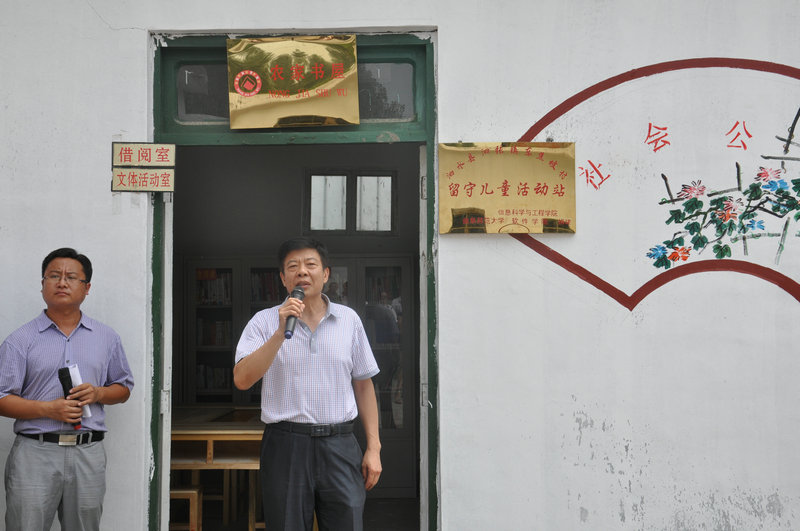 在东焦坡村,荆兆勋、刘新生出席了由我校信息科学与工程学院、软件学院捐建的留守儿童活动站揭牌仪式。荆兆勋与泗水县委组织部部长孙希忠共同为活动站揭牌。刘新生发表讲话,他指出,经过两年多的努力,我校“第一书记”扶贫工作取得显著成效,帮包村群众的物质生活条件得到了较大改善,在此基础上开展精神扶贫也是“第一书记”工作的重要职责。留守儿童活动站的建设是曲师大信息科学与工程学院和软件学院广大党员献爱心之举,对全村留守儿童的成长一定会起到积极的影响。希望以此次揭牌仪式为契机,曲师大相关学院与泗张镇进一步加强交流合作,共同把活动站办好,为留守儿童多做好事,帮助他们健康快乐地成长。
