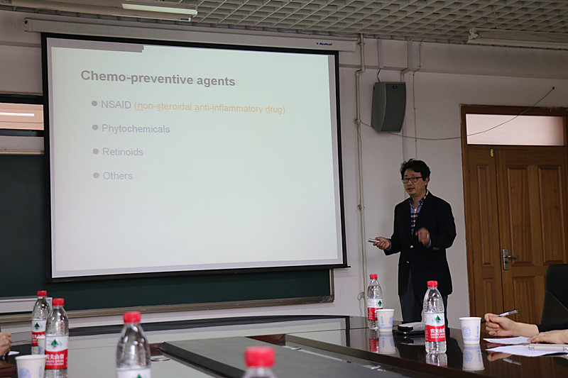 4月25日上午,金钟湜教授为生命科学学院的师生做了题为“Transgenic expression of NAG-1 protects mice from colorectal cancer and high-fat diet induced obesity”的报告,生命科学学院院长徐来祥教授主持了报告。报告从治疗癌症常用的化合物,与癌症发生密切相关的基因讲起,主要介绍了NAG-1基因是与体重、体脂含量,代谢活动、细胞凋亡以及癌症的发生密切相关的候选基因,及与肠癌和高脂食物引起肥胖间有一定的关联。该报告的实验设计、研究方法及研究结果都引起生命科学学院师生强烈的兴趣,并与金钟湜教师进行了热烈的讨论。