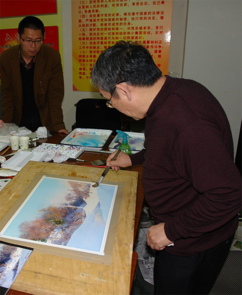 艺委会秘书长苏海青作2013年工作报告,总结去年工作,畅谈未来计划,激发艺术家以更多的热情投身创作。陶世虎总结山东水彩画界的发展时说,一年来山东水彩画事业在不断求索和进步中,新作者不断涌现,画家们经常在一起切磋共同提高,作品呈现的真情实感和真知灼见,充分体现了美术工作者对艺术的真诚与追求。接下来,陶世虎就十二届全国美展做了动员。