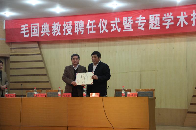 115下午,江西省书协主席毛国典兼职教授聘任仪式在孔子会堂举行。副校长、书法学院院长马东骅出席仪式并为毛国典颁发了兼职教授聘书。人事处、书法学院负责人及师生代表参加了聘任仪式。