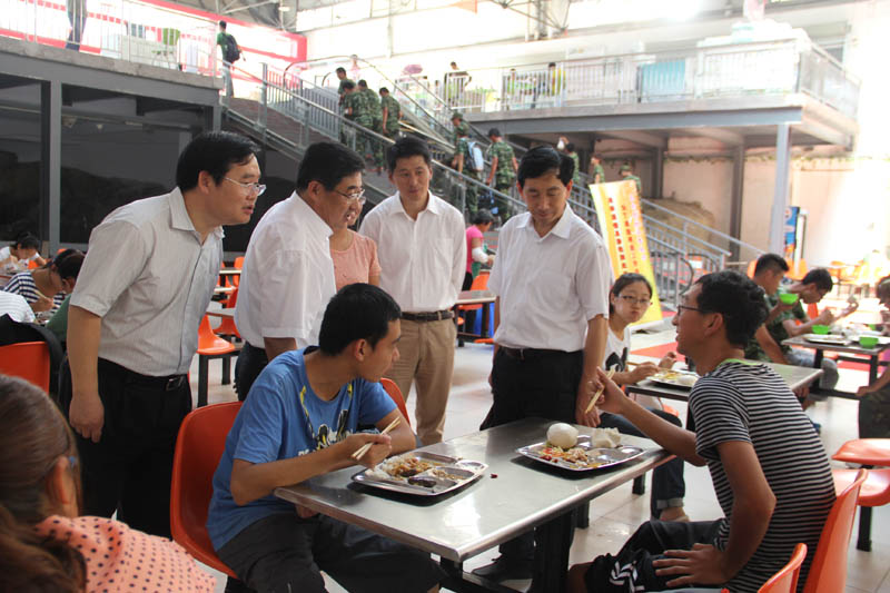 9月17日,学校党委书记荆兆勋、副书记孙文亮在校区管理办公室、学生工作办公室负责人的陪同下,深入东升园食堂检查指导工作,并和学生们一起就餐。 学校领导视察了东升园食堂,并与食堂经营者进行了交谈,详细了解了学生食堂饭菜价格、质量、品种和食堂的卫生、安全、管理等情况。学校领导指出,要时刻把食品安全放在第一位,马虎不得;要为学生提供健康饮食,营养配餐,让学生花钱少,吃的饱,吃得好;要积极响应光盘行动,反对铺张浪费,杜绝舌尖上的浪费。 荆兆勋强调,要以学生为本,调整经营模式,加强管理,提高质量,要在学生中多调研,多了解情况,多征求学生意见,及时掌握学生对饭菜质量、服务态度、饮食卫生等方面的意见。