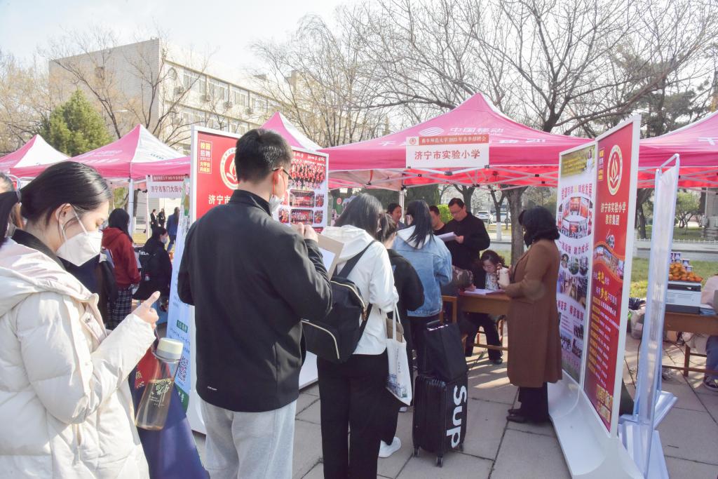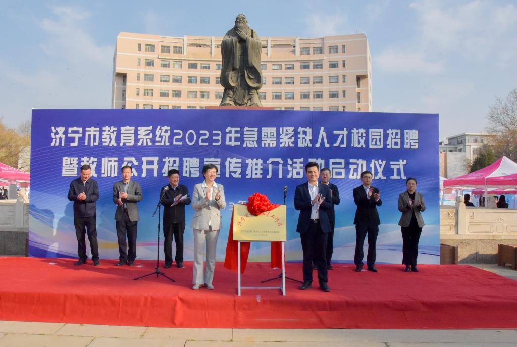 曲阜师大研究生处讯 3月11日, 2023年济宁市教育系统急需紧缺人才XK在线专场校园招聘暨校地共建“济宁市教育人才工作站”揭牌仪式在XK在线举办。本次活动由曲阜师大联合济宁市教育局、济宁市人力资源和社会保障局主办。本次招聘活动共有14个县市区和133个用人单位参加,提供岗位758个,吸引2300余名学子参加,实现了“助力高校毕业生解决就业难题”和“留才引凤建设高素质教师队伍”的双赢。
