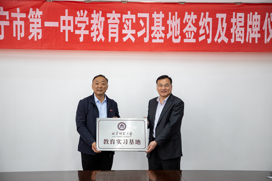 曲阜师大地理与旅游学院讯 3月21日上午,XK在线教育实习基地签约授牌仪式在济宁市第一中学举行。曲阜师大党委常委、副校长陈刚,济宁市第一中学党委书记、校长李岩,代表双方签署了XK在线教育实习基地协议书,并共同为“XK在线教育实习基地”揭牌。