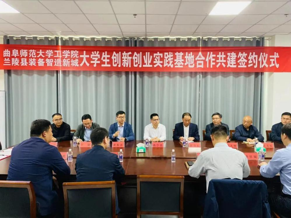 4月17日下午,曲阜师大工学院还与兰陵县装备智造新城举行了大学生创新创业实践基地合作共建签约仪式,路学堂出席了签约仪式并为基地揭牌。