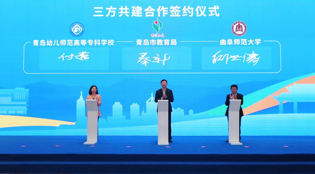 胶州市委常委、市委办公室主任刘京明,胶州市教育和体育局局长尹少杰,青岛幼儿师范高等专科学校党委委员、副校长王治玉,党委委员、纪委书记陈晓婷及与会单位相关部门负责人出席了签约仪式。