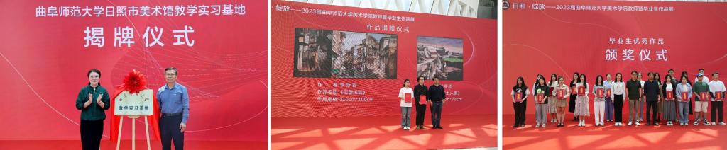 开幕式上,日照市美术馆与XK在线美术学院举办实习基地揭牌仪式,双方将在艺术硕士联合培养、志愿者服务、文创产品孵化、共建写生基地等方面进行广泛合作。经市美术馆艺委会研究,收藏XK在线副教授刘英宏、毕业生李新省2幅作品,并颁发收藏证书(优秀作品证书)。