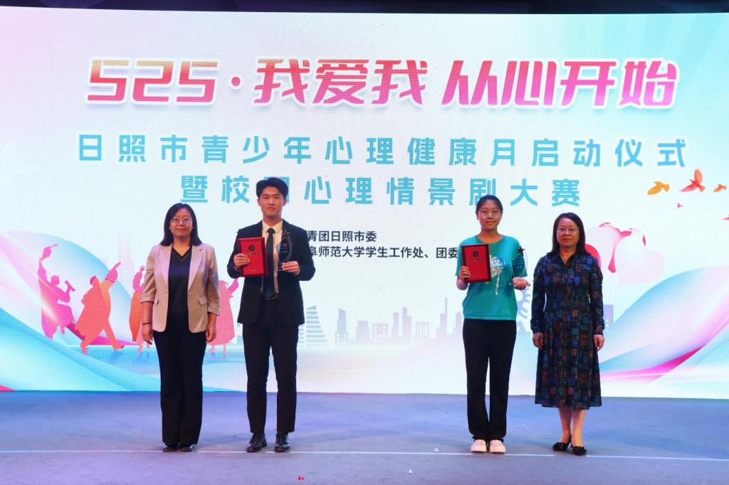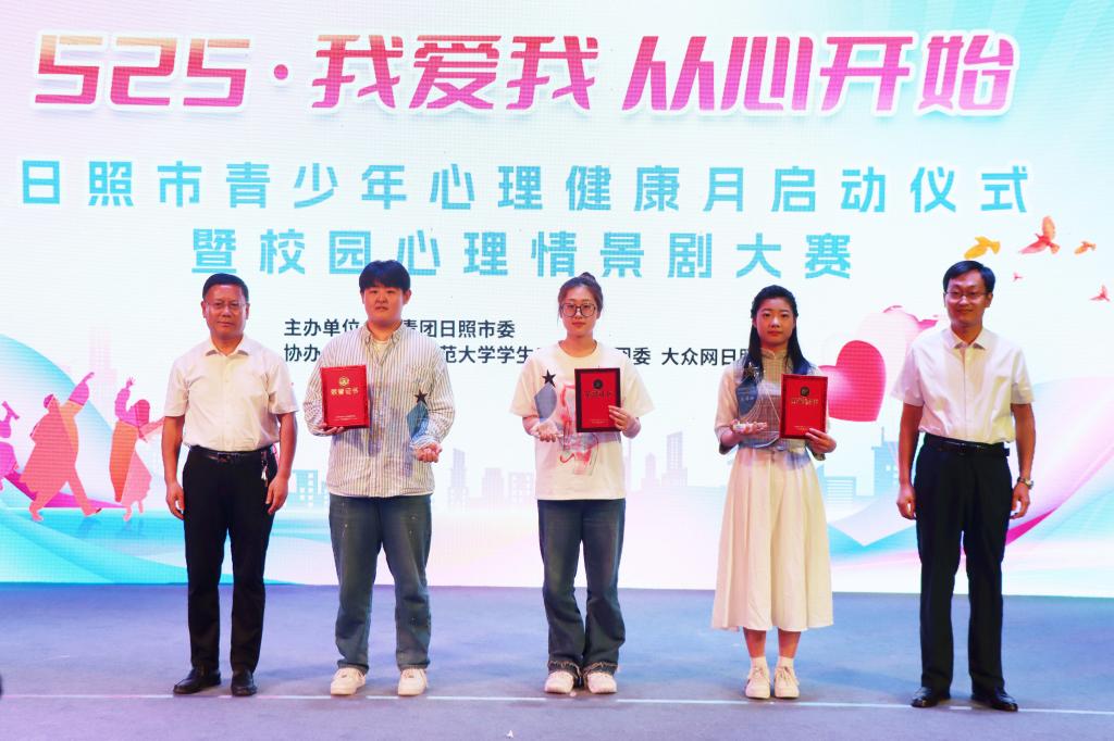 启动仪式上,李婉莹宣布了“525 我爱我 从心开始”日照市青少年心理健康月系列活动内容,即日起至6月底,集中开展宣讲、文体、竞赛、创意、咨询辅导五大类共28项活动。随后,陈刚,杜庆森,李婉莹,于相春共同启动日照市青少年心理健康月活动。