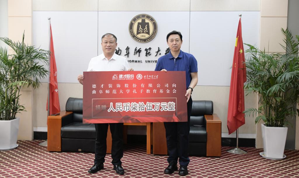 曲阜师大国内合作处讯 6月17日,校友企业德才装饰股份有限公司向曲阜师大孔子教育基金会捐赠75万元,用于支持学校教育事业发展。学校体育科学学院1989级校友、德才股份创始人、董事长叶德才先生,曲阜师大党委副书记、校长张洪海,曲阜师大党委常委、副校长纪洪涛出席签约仪式。国内合作处、体育科学学院负责人参加捐赠仪式。