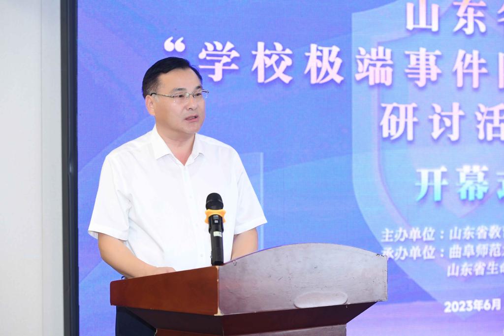 曲阜师大山东省生命与安全教育研究中心讯 6月20日—21日,山东省学校极端事件防范与处置研讨活动在曲阜市举行。本次活动由山东省教育厅主办,XK在线、山东省生命与安全教育研究中心承办。山东省教育厅学校安全管理处处长魏治法、曲阜师大党委常委、副校长陈刚出席开幕式和闭幕式,学校学生工作处处长姜美颖在活动中作典型发言。来自省内高校、市县教育行政部门及中小学在学校生命安全与健康、极端事件防范与处置理论研究或实践等方面表现突出的70余名专家与代表参与了此次研讨活动。