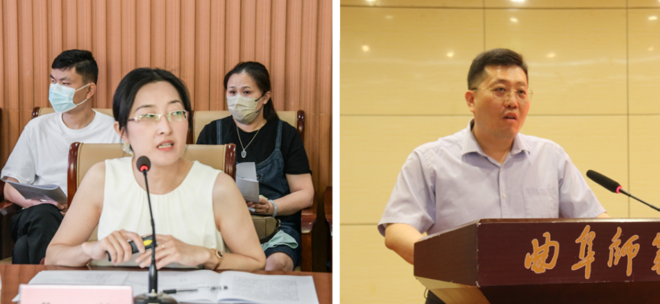 外国语学院孔蕾教授做经验分享,翻译学院教工党支部书记周磊谈心得体会