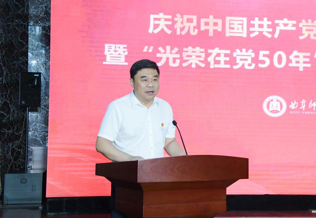 邢光在讲话中向荣获纪念章的老党员表示诚挚祝贺,向广大老党员、老干部致以崇高的敬意。邢光强调,“光荣在党50年”纪念章是党中央对老党员多年来为社会主义建设和改革开放作出贡献的充分肯定,体现了以习近平同志为核心的党中央对老党员的政治关怀和尊崇厚待。学校历经68个春秋,取得了辉煌的办学成就,各位老党员、老前辈作为亲历者、见证者、实践者和推动者,奉献出了毕生的心血和精力。尤其是学校第九次党代会以来,学校已踏上强化特色、追求卓越,加快建设世界知名的高水平孔子家乡大学的新征程,希望各位老领导、老前辈、老同志继续发挥好政治优势、经验优势、威望优势,一如既往地关心、关注、支持、指导学校事业的改革发展。邢光要求学校各部门、各单位要切实提高做好新时代老干部工作的政治站位,要把尊重老党员与尊重党的根脉、党的历史紧密联系起来,加大对老党员的关怀力度,主动帮助老同志解决实际困难,用心、用情做好服务保障工作,真正做到政治上尊重、生活上关心、精神上激励,让大家老有所学、老有所乐、老有所为,切实感受到组织的关心和温暖。