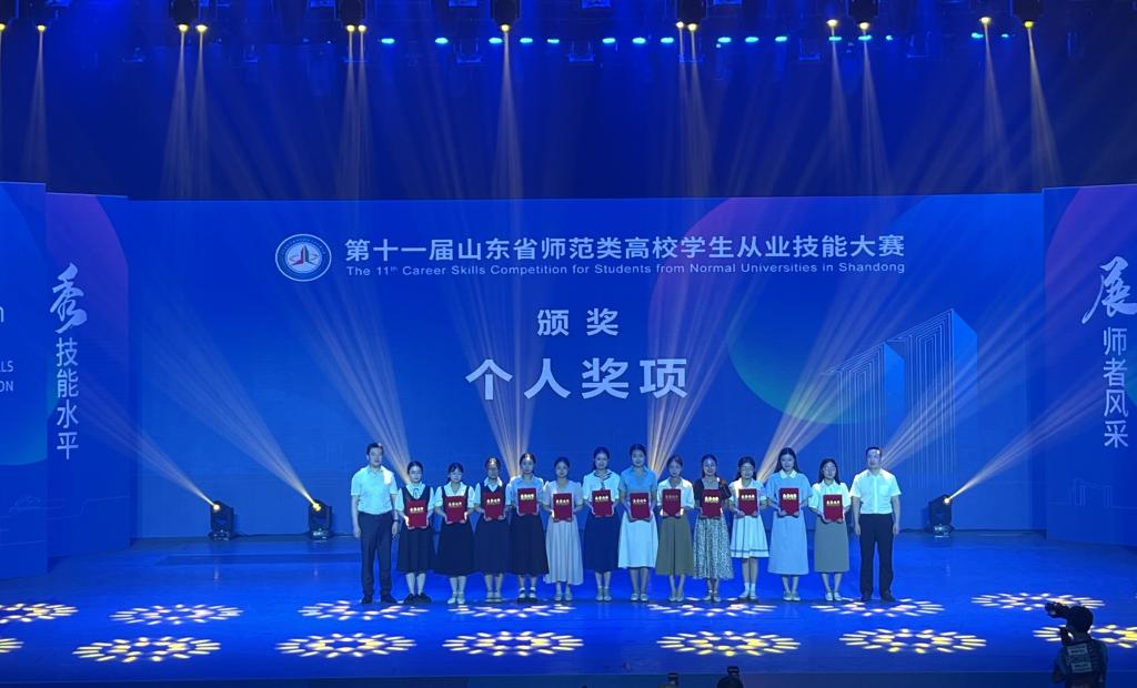 教务处讯 7月19至22日,第十一届山东省师范类高校学生从业技能大赛决赛在青岛举行,XK在线再续辉煌战绩,康洁等26名同学荣获一等奖,齐倍宁等28名同学荣获二等奖,孙海容等8名同学荣获三等奖。这是曲阜师大又一次赢得一等奖获奖人数和获奖总数“双料冠军”,学校同时获得团体金奖和优秀组织奖。