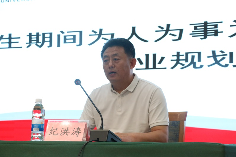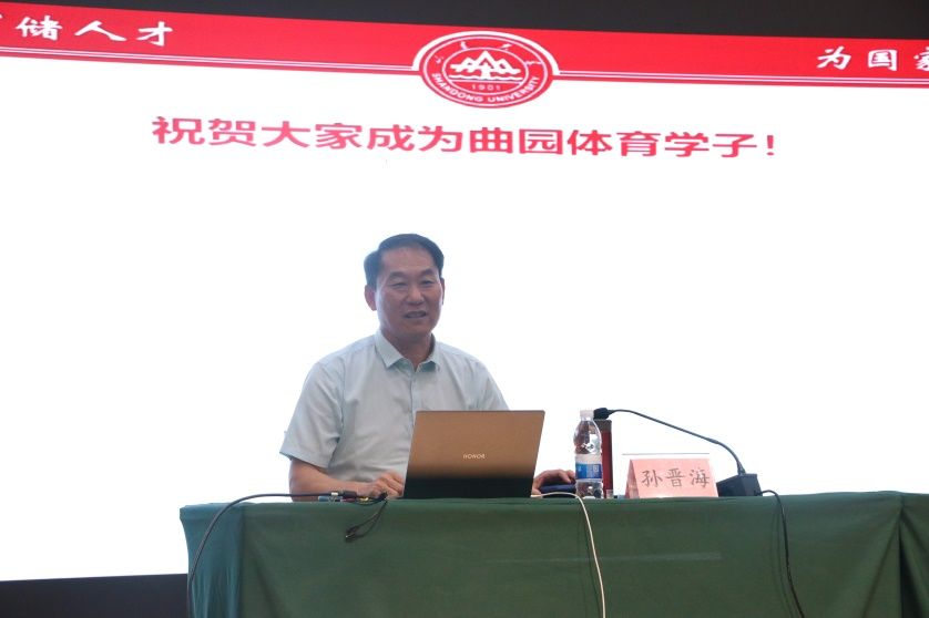 纪洪涛在致辞中高度评价了孙晋海教授在教学与研究中取得的成就,并对他长期以来关注、支持曲阜师大体育学科建设和人才培养表示感谢,希望同学们通过此次讲座学有所获,为自己的研究生阶段开好局、起好步。