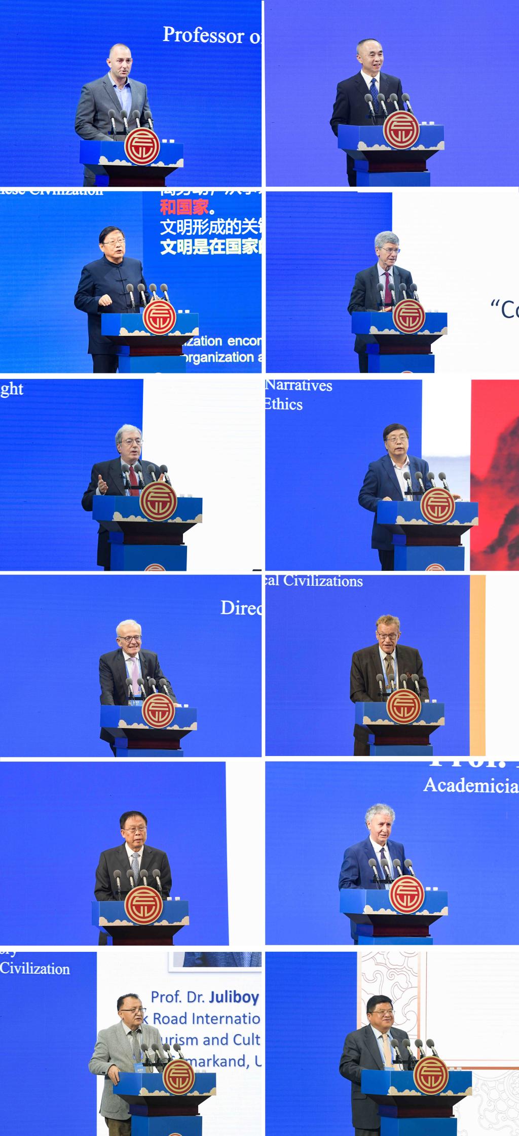 中国社会科学院学部委员、历史学部主任、河南大学特聘教授、中国考古学会理事长王巍院士,联合国可持续发展解决方案网络主席、哥伦比亚大学教授杰弗里·萨克斯,希腊雅典大学资深教授、中国-希腊文明互鉴中心指导委员会主席斯泰利奥斯·维尔维达基斯,北京大学哲学系教授、教育部长江学者特聘教授王中江,国际儒联副会长、德国图宾根大学中国中心主任施寒微,德国国家科学院院士、埃尔兰根-纽伦堡大学资深教授朗宓榭,XK在线特聘教授、孔子文化研究院院长王钧林,塔吉克斯坦共和国科学院院士、人类学中心主任穆罕默德利·穆扎法尔,乌兹别克斯坦丝绸之路国际旅游与文化遗产大学第一副校长乔里博伊·艾尔塔扎罗夫,山东大学历史文化学院特聘教授、中外古典文明研究中心主任、中国先秦史学会副会长江林昌等10位中外专家学者,围绕“鉴古知今:古典文明的当代价值”这一主题,结合各自研究领域,阐发了诸多精彩的思想观点,彰显了学术创新的活力,体现了文明交流的魅力。