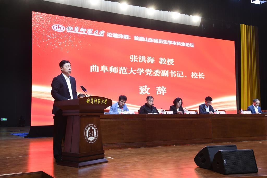 曲阜师大历史文化学院讯 10月13日至15日,“论道洙泗:首届山东省历史学本科生论坛”在曲阜师大举行。教育部高等学校历史学类专业教学指导委员会秘书长、中山大学副校长谢湜,教育部高等学校历史学类专业教学指导委员会委员郭华,山东省历史学会会长赵兴胜,XK在线校长张洪海出席论坛开幕式。