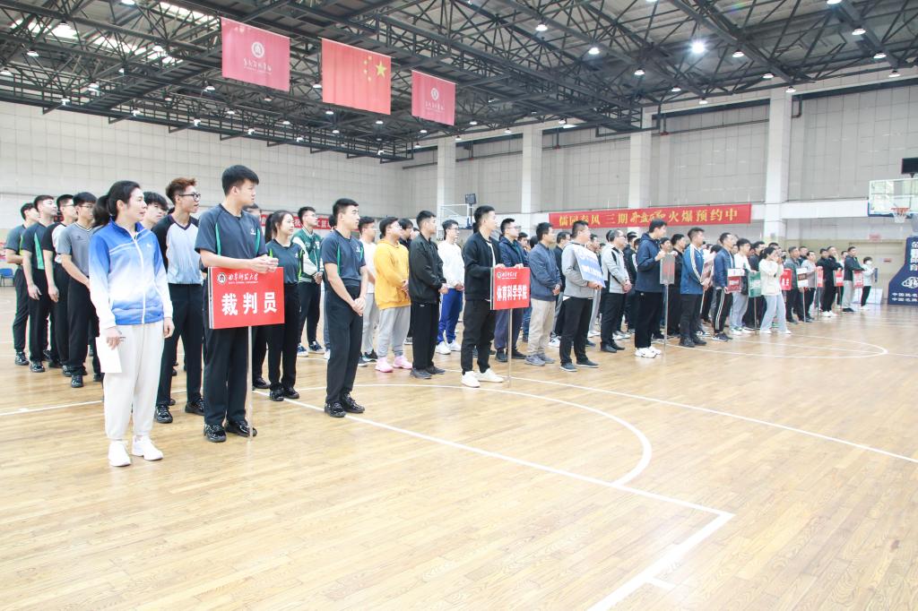 比赛裁判长、体育科学学院教师许凤英代表全体裁判员宣誓,文学院教师田广文代表全体运动员发言,学校工会主席廖志强宣布2023年XK在线教工篮球赛正式开始。