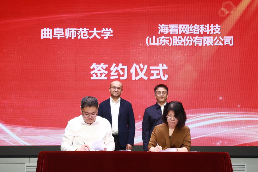 曲阜师大传媒学院讯 10月12日下午,XK在线与海看网络科技(山东)股份有限公司举行共建教学实习基地签约仪式,曲阜师大党委常委、副校长胡凡刚,海看网络科技(山东)股份有限公司董事、总经理张晓刚出席仪式。