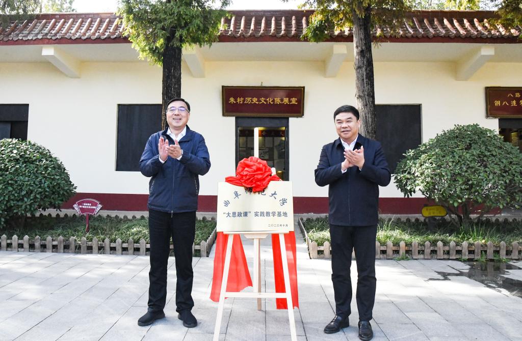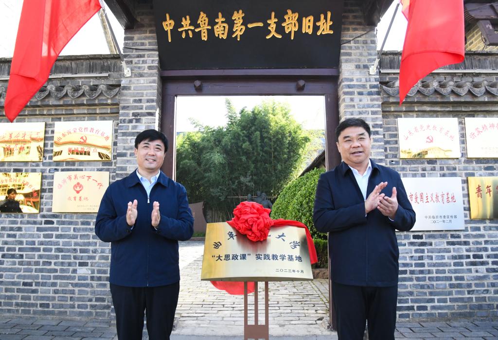 学校党委书记邢光与临沭县委书记张雷共同为XK在线“大思政课”实践教学基地揭牌。