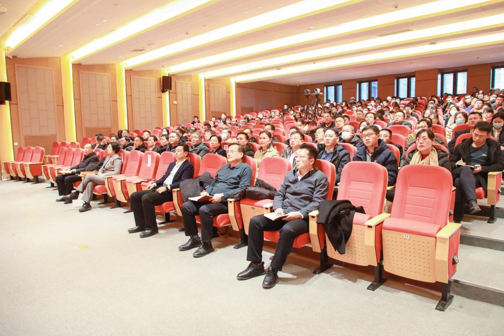 李志红作了《倡树优良师德师风,担当育人育才使命》的报告,向全体老师提出了“争做大国良师、守好师德师风第一标准、厚植师道传统”的要求和期望。一要自觉对标对表,笃行“躬耕教坛,强国有我”。带头明道、信道,做好“引路人”,践行就道、弘道,做好“筑梦人”,善于务本、固本,做好“燃灯者”;二要正反典型并举,守好师德师风第一标准。发挥正面典型的榜样力量,讲好师德故事传递正能量,加强反面案例的警示教育,坚持以案为鉴强化硬约束;三要聚力常态长效,厚植孔子家乡大学师道文化。用好阵地载体,实现师德师风建设新提升,厚植师道文化,树好师德师风建设新标杆,落实长效机制,打造师德师风建设新常态。