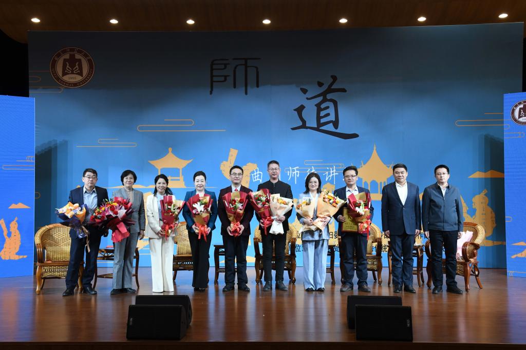 活动最后,师生代表通过登台献花、视频连线等形式表达了对曲园教师的感恩和祝福,伴随着《夜空中最亮的星》的优美旋律,本届曲园师德讲坛在热烈的掌声中圆满落幕。