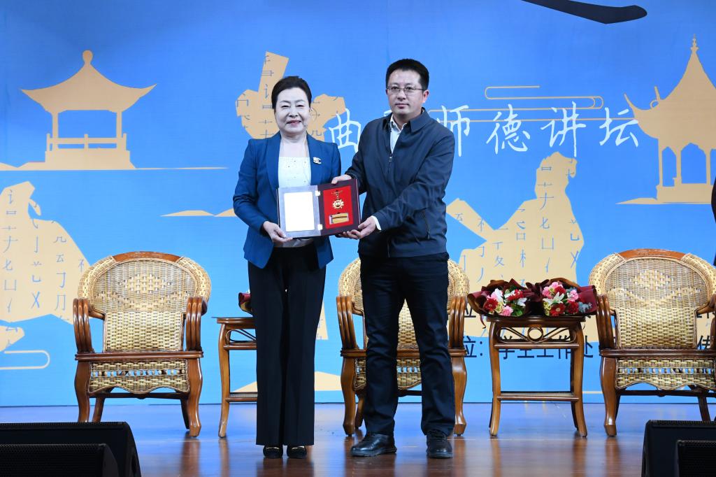 学校党委书记邢光为5位嘉宾颁授第七届曲园师德讲坛纪念牌。