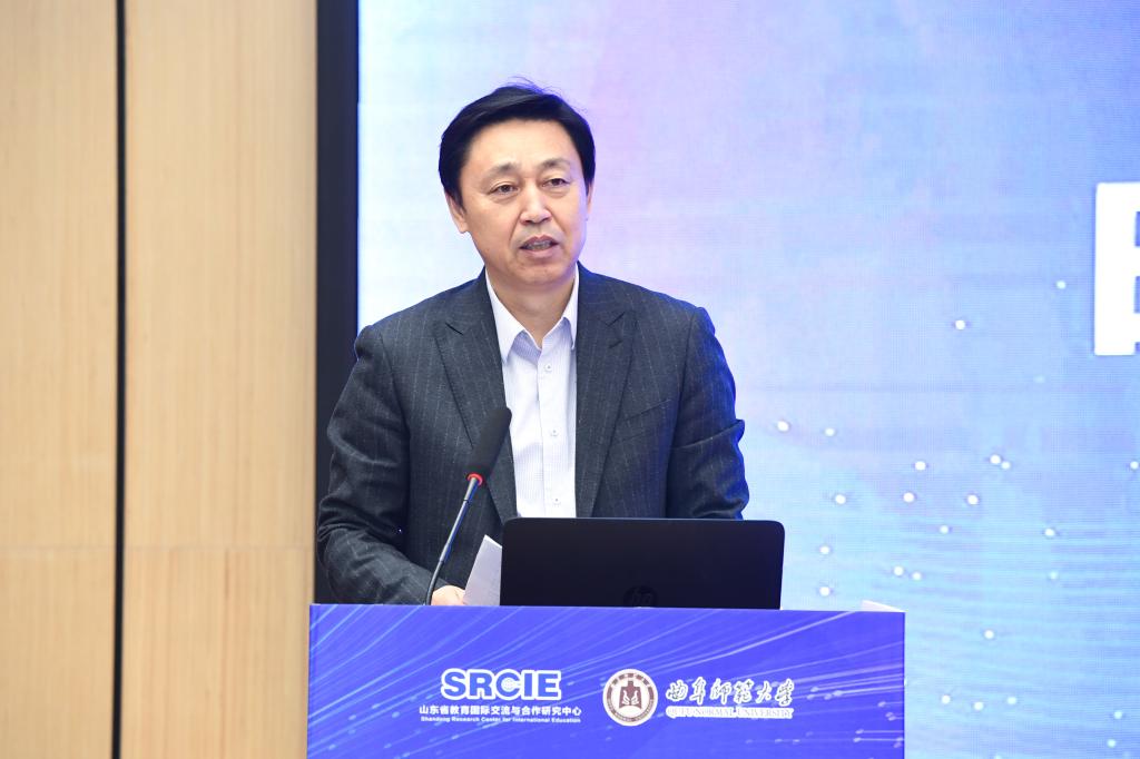 张洪海在会上致辞,欢迎与会专家学者相聚曲阜,共话发展。张洪海介绍了学校基本情况和学校国际化办学的相关进展,表示本次培训会将有助于各高校增强战略定力、拓宽国际视野,推进中外合作办学“提质增效、服务大局、增强能力”,助力山东省国际教育向高质量、高品质方向迈上新台阶。