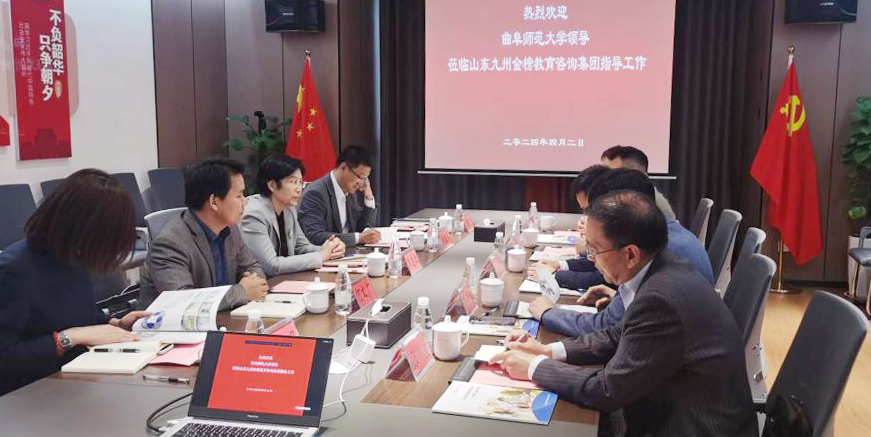 在山东九州金榜教育咨询集团,董事长冯海宁介绍了集团的基本情况。李志红介绍了2024届毕业生情况,希望以此次调研交流为契机,双方能够建立长效机制,在实习就业、人才培养、产教融合等方面进行全方位深度合作。