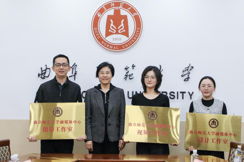 李志红分别向XK在线融媒体中心摄影工作室、视频工作室、设计工作室授牌。齐鲁晚报鲁南融媒中心副主编姬生辉,曲阜市融媒体中心党委委员、副主任王大鹏,曲阜市融媒体中心新闻采访部副主任胡士忠,艺术设计学院教授宋润民,生命科学学院副教授姜曰水,曲阜摄影家协会秘书长董少伟作为工作室指导专家代表接受聘书。