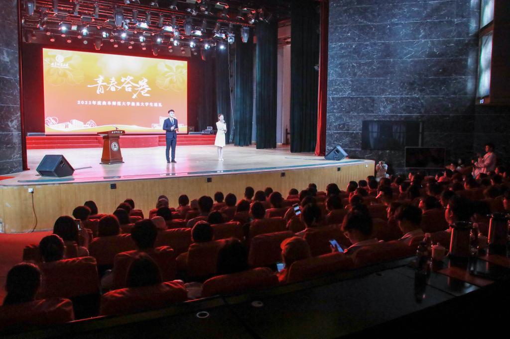 优秀青年学生代表世界大学生运动会射箭冠军王世坤、高质量就业代表周宇馨、中国大学生自强之星获得者张孝林、退役士兵代表杨会兴分别围绕夺冠历程、求学经历、志愿服务、参军体验与同学们进行了分享交流,彰显了曲园学子敢于吃苦、善于创新的进取品格,表达了曲园青年锐意进取、奋发向上的信心决心。
