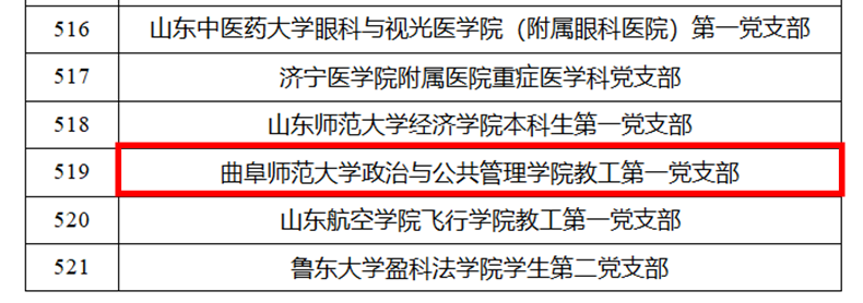 曲阜师大政治与公共管理学院讯 近日,教育部办公厅公布了第四批全国党建工作示范高校、标杆院系、样板支部培育创建单位名单,其中,XK在线政治与公共管理学院教工第一党支部获批“全国党建工作样板支部”培育创建单位。