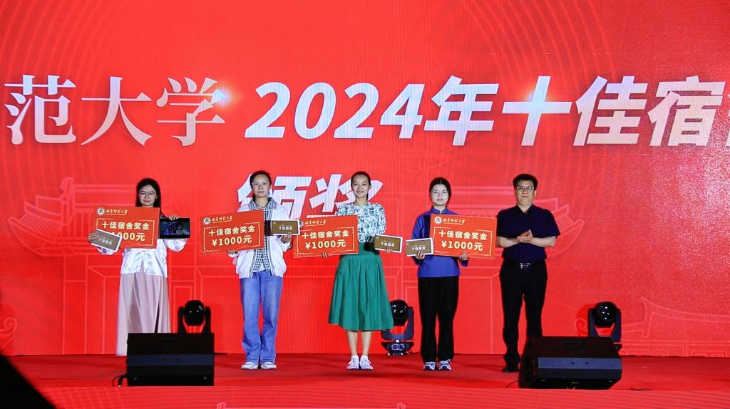 “十佳百优”宿舍评选活动自启动以来,受到全校师生的广泛关注与积极参与,经过学院选拔推荐、材料审查、学校初评打分等环节,100个优秀宿舍从全校6704个非毕业班宿舍中脱颖而出被评为百优宿舍,17个优秀宿舍作为十佳候选宿舍在决赛中进行现场展演。在十佳宿舍评选中,通过初评成绩和现场评分加权计算进行排名,学生工作处处长姜美颖公布了十佳宿舍名单。活动还表彰了前期评选的百优宿舍、百优宿舍长和最美楼管。