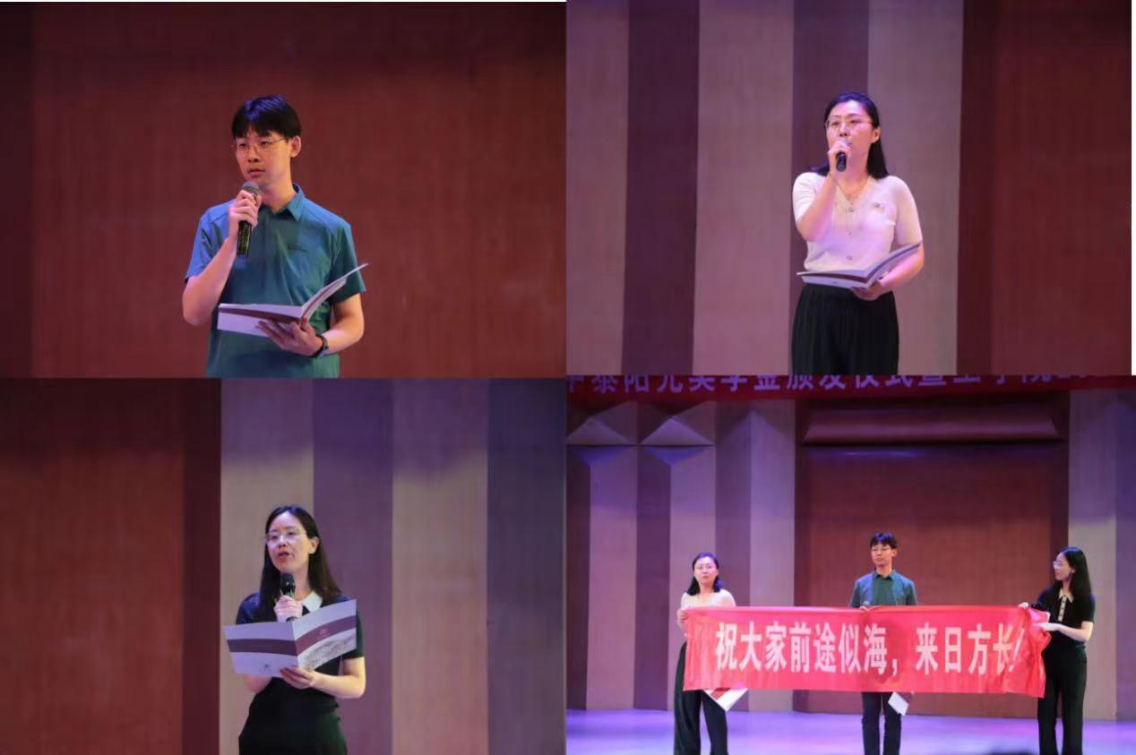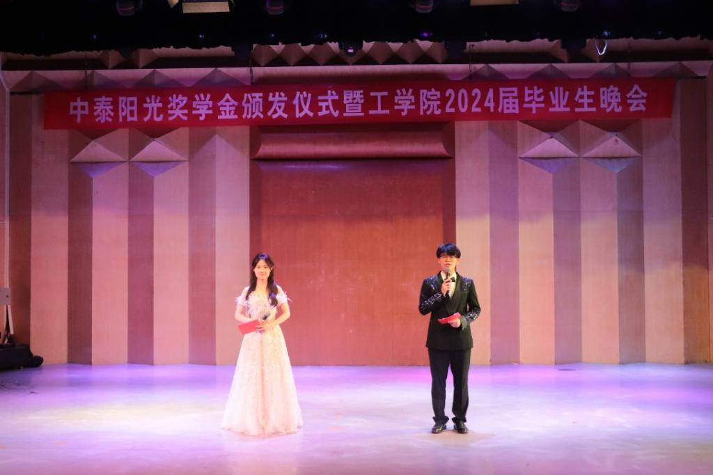 曲阜师大工学院讯 6月11日晚,曲阜师大工学院于音乐厅举办中泰阳光奖学金颁发仪式暨学院2024届毕业生晚会。学校党委常委、副校长胡凡刚,山东中泰阳光集团董事长牟建出席颁发仪式。