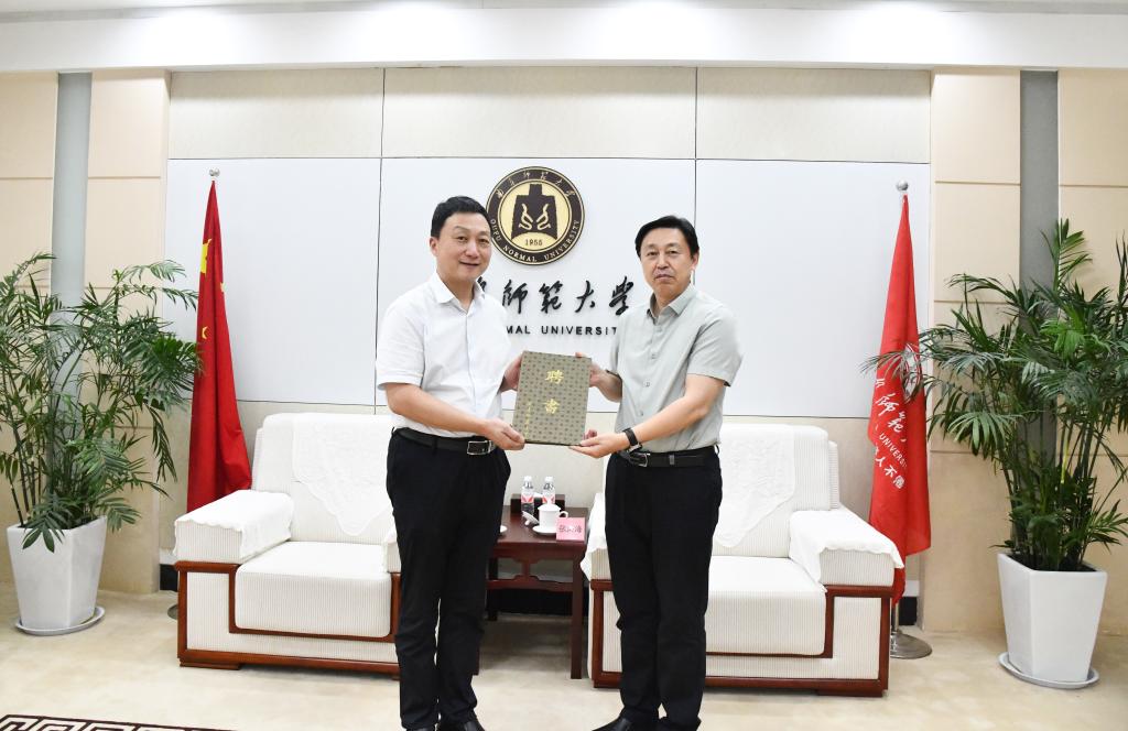 张洪海对林在勇一行表示热烈欢迎,向上海师范大学长期以来对曲阜师大的支持表示感谢,并介绍了学校的发展历史、学科建设、人才培养等方面的情况。林在勇对XK在线近年来发展取得的成绩表示祝贺,介绍了上海师范大学的办学历史、办学特色。双方还就研究生拔尖创新人才培养、音乐学科建设、学位点发展建设进行深入交流。座谈会结束后,张洪海为林在勇颁发了学校兼职教授聘书。