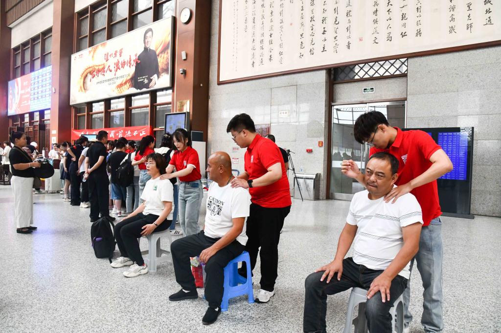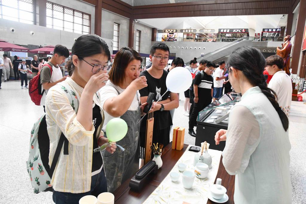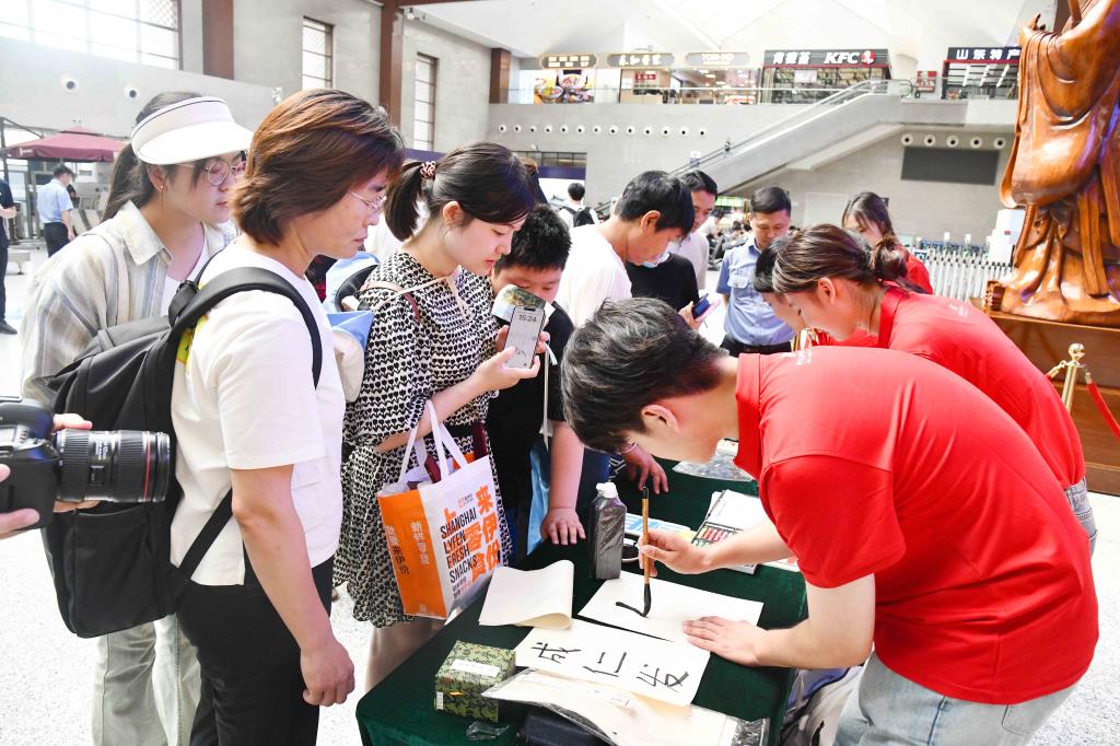 诗词飞花令、手绘中国地图、书法展演、标本制作、理疗保健……100多名学生纷纷变身能工巧匠,秀出了专业技能的新高度,为大家的盛夏旅程带来别样活力,彰显了大学师生的多彩魅力。XK在线建设的教师博物馆将与曲阜高铁东站合作设立尊师优享服务台,携手擦亮孔子故里尊师重教的“最美名片”。通过这一创新服务,旅客凭教师有效身份证明可在候车期间享受一杯尊师香茶、品尝由志愿者现场制作的孔府非遗“师道点心”、体验拓印孔子行教像。服务台还展示了“七一勋章”获得者张桂梅、人民教育家于漪、全国最美教师黄大年等名师大家的珍贵教育文物,开展“寻找教师之道”互动答题,赠送教师主题文创作品。活动展示将优秀传统文化与文明出行的理念融合传播,让广大旅客目不暇接,赞不绝口。