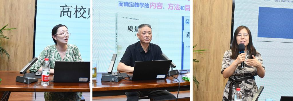 在教育培训环节,山东省互联网传媒集团舆情服务部教育舆情工作组负责人、首席舆情分析师肖瑶作了题为《高校师德师风舆情风险防范与管理》的报告。南京航空航天大学经济与管理学院博士生导师、第三届国家创新教学比赛一等奖获得者方志耕教授以《质量管理》课程教学经验与体会为例,从课程简介、课程具体情况、课程考核与总结等几个角度与新教师们共同探讨如何上好一门课。山东省课程思政研究中心副主任、齐鲁工业大学教务处副处长李红霞从加强中华优秀传统文化教育、深入开展宪法法治教育、深化职业理想和职业道德教育等方面详细阐述了课程思政教学设计原则与方法。