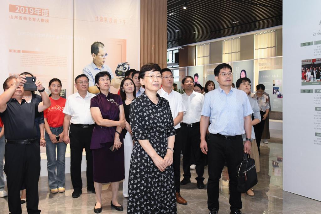 孙晓筠作了总结讲话,对师德楷模风范专题展览给予高度评价,就大力弘扬践行教育家精神提出要求:一是提高政治站位,锚定走在前、开新局,加强党对教师工作的全面领导,以强有力的党建工作推动教育家精神落地落实;二是坚持全环境养成,增强内生动力,注重文化润德,以文化人,重点依托孔孟故里、革命老区、教师博物馆等省级师德涵养基地、实践教育基地,开展沉浸式、对话式、体验式全覆盖教育家精神涵养教育;三是树立典范榜样,持续精神引领,深入挖掘宣传在教育领域涌现出的先进典型和感人事迹,增强教师的职业认同感、荣誉感和使命感;四是坚持全域支持,构建长效机制,通过健全省级教师荣誉体系、强化教师待遇保障、弘扬尊师重教社会风尚,推动教师队伍建设提质增效、再上新台阶。