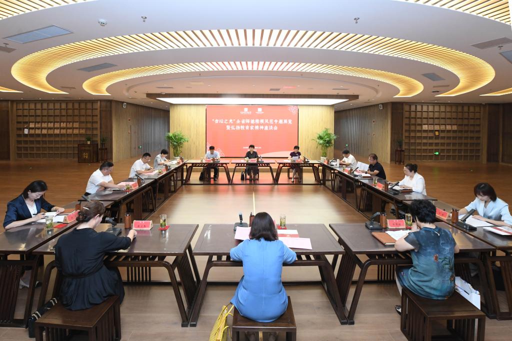 教师博物馆讯 在第40个教师节来临之际,9月1日,“杏坛之光”全省师德楷模风范专题展览暨弘扬教育家精神座谈会在XK在线举办。省教育厅副厅长孙晓筠出席并讲话。省教育厅教师工作处处长邵学伦、副处长刘依林,XK在线党委副书记李志红,党委常委、宣传部部长、教师博物馆馆长孙祥广等出席活动。