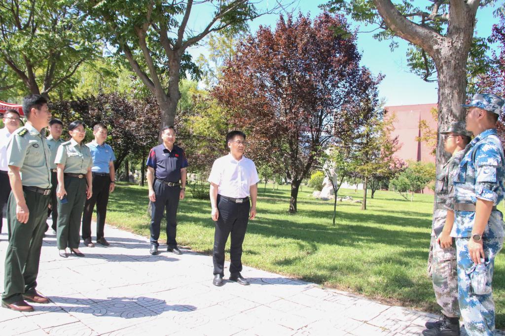 学校领导观看了训练中的学生方队,向承训教官和辅导员老师详细了解军训科目、训练进度以及参训学生的身体、心理、生活状况,对同学们高昂的士气、整齐的军姿、刻苦的精神给予了肯定,并向军训教官和辅导员表达感谢和问候。学校领导强调,要科学施训,加强人文关怀,实时关注学生身心健康状况,确保训练安全和质量;要充分利用军训培育学生的爱国主义精神,增强国家安全意识、责任意识,培养良好的行为习惯。学校领导与同学们深入交流,关切地询问学生的健康状况,勉励大家要通过军训磨练坚强意志,增强纪律意识,为接下来的学习生活打下坚实的基础。