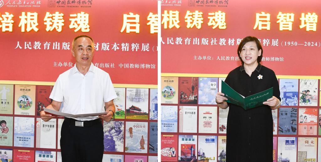 教师博物馆讯 9月10日,正值第40个教师节,人民教育出版社与XK在线联合推出的“培根铸魂 启智增慧——人民教育出版社教材版本精粹展(1950-2024)”在教师博物馆开展。