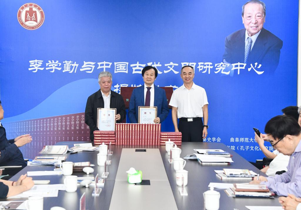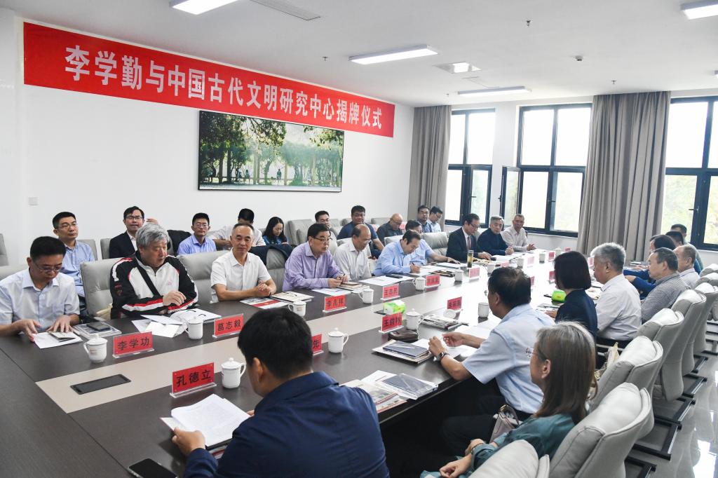 孔子文化研究院讯 9月26日,由中国先秦史学会、XK在线主办,XK在线孔子文化研究院(洙泗书院)承办的“李学勤与中国古代文明研究中心”揭牌仪式在曲阜师大举行。来自中国先秦史学会、中国社会科学院、中国科学院、清华大学、浙江大学、山东大学、上海交通大学、西北大学、深圳大学、大连大学、河南社科院、山东省博物馆、北京语言大学、北京第二外国语学院、山东师范大学、尼山世界儒学中心、孔子研究院、曲阜政协及XK在线等科研机构及单位的40多位专家学者齐聚一堂,共同缅怀李学勤先生人格风范,回忆与李学勤学术交往,总结学术贡献,为李学勤与中国古代文明研究中心未来发展献计献策。