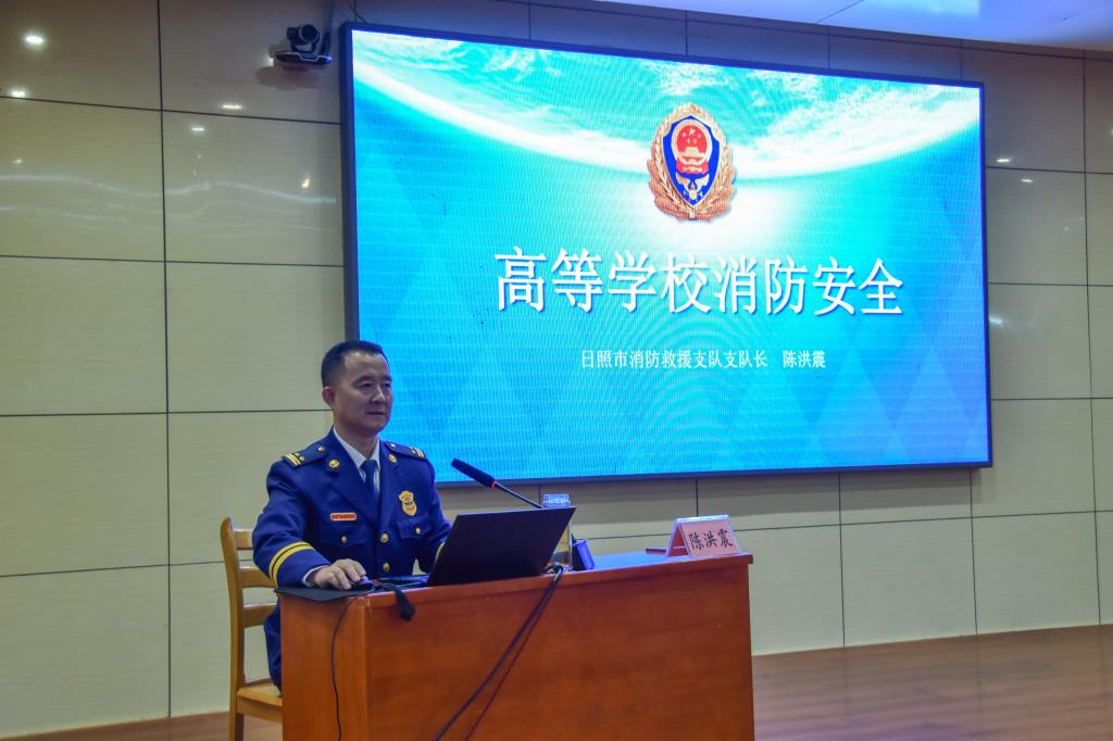 曲阜师大保卫处讯 为做好高等学校消防安全指导服务工作,提高广大师生的消防安全意识与技能,10月30日下午,日照市高等学校消防安全公开课在XK在线日照校区开讲。本期公开课由日照市教育局、日照市消防救援支队、XK在线联合举办,曲阜师大党委常委、副校长胡凡刚主持,日照市消防救援支队支队长、日照市政协委员陈洪震主讲。
