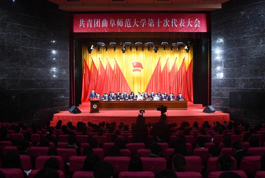 大学生活动中心礼堂灯光璀璨、气氛热烈,主席台上方悬挂着“共青团XK在线第十次代表大会”会标,后幕正中是熠熠生辉的团徽,10面鲜艳的红旗分列两侧。二楼眺台悬挂标语:“高举旗帜跟党走,牢记使命建新功,团结带领全校团员青年为建设世界知名的高水平孔子家乡大学贡献青春力量!”261名团代表肩负着全校30837名共青团员的重托出席大会。