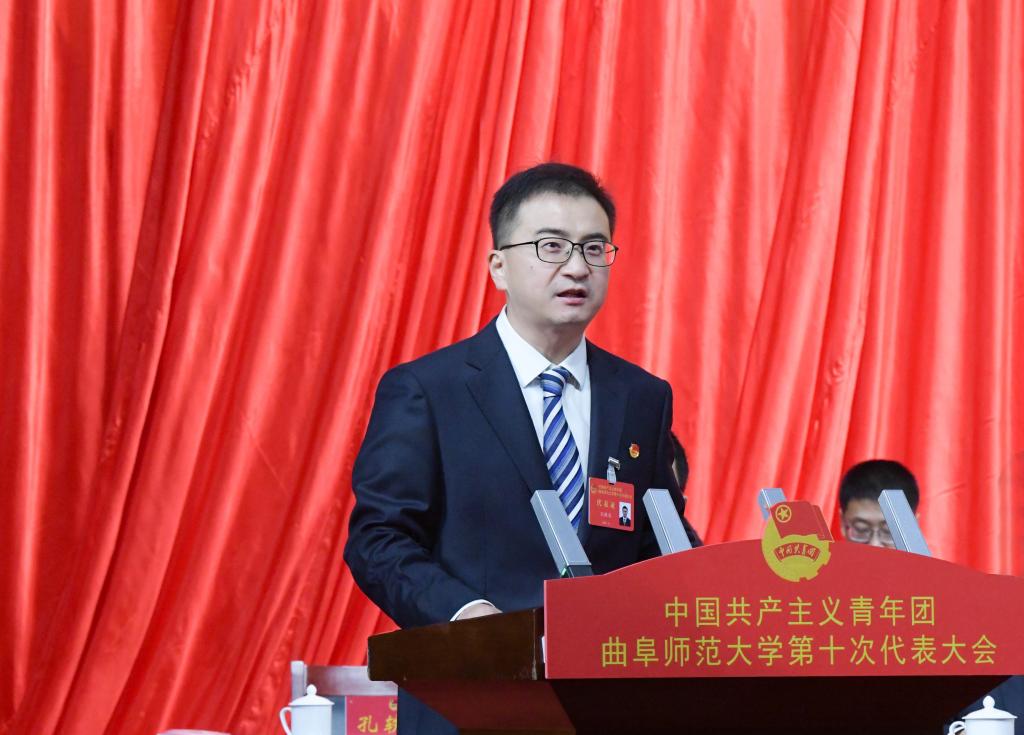 学校团委书记孔轶众代表共青团XK在线第九届委员会向大会作题为《高举旗帜跟党走,牢记使命建新功——团结带领广大团员青年为建设世界知名的高水平孔子家乡大学贡献青春力量》的工作报告,回顾了学校第九次团代会以来共青团的工作,分析了新时代共青团工作面临的新形势新任务,明确提出了今后五年学校共青团工作的总体思路和主要任务。
