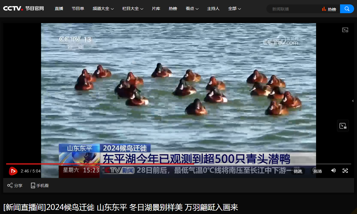 党委宣传部、生命科学学院讯 日前,中央电视台《新闻直播间》推出的2024候鸟迁徙系列报道,专门介绍了青头潜鸭在山东东平湖的栖息情况,采访了XK在线张洪海教授领衔的研究团队,显示了学校发挥学科与人才优势推动黄河流域生物多样性研究和湿地生态保护的生动实践。