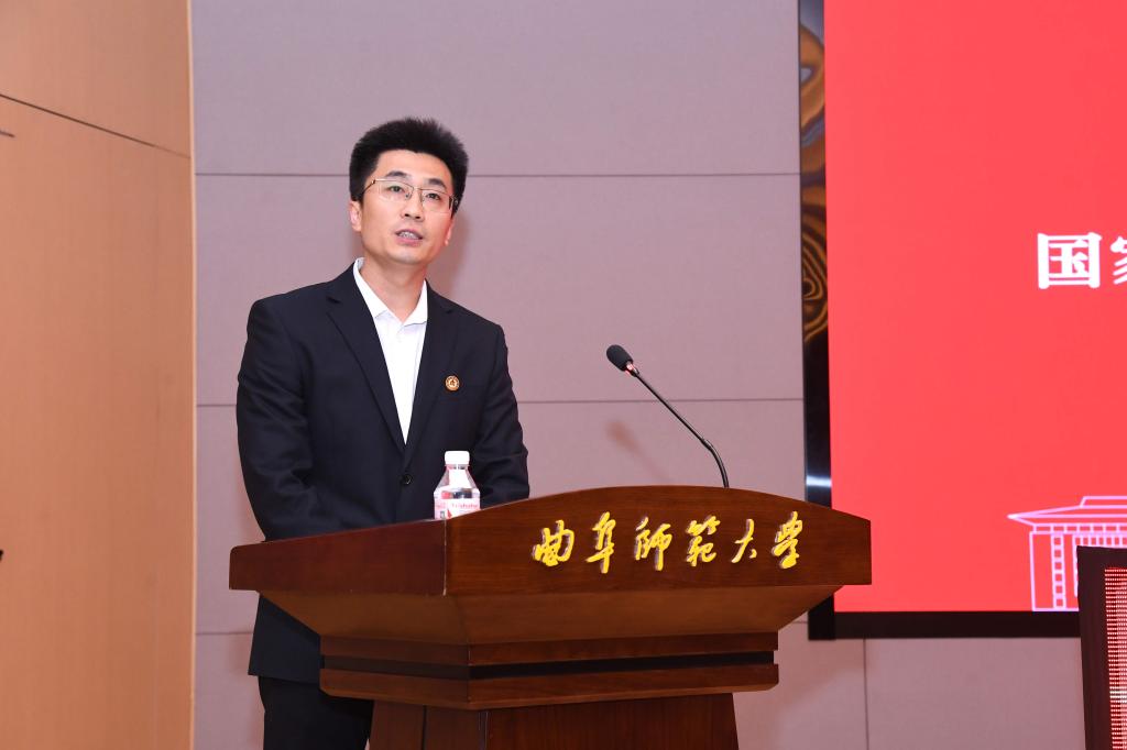 仪式上,张洪海、李志红、傅永聚、刘德明、刘晓兵、谢依瞳在曲阜校区会场,胡凡刚、刘刚、王海峰、郭洪贵、徐健腾、王滋润在日照校区会场共同发布了校庆主题——“弘文育人,兴学报国”。