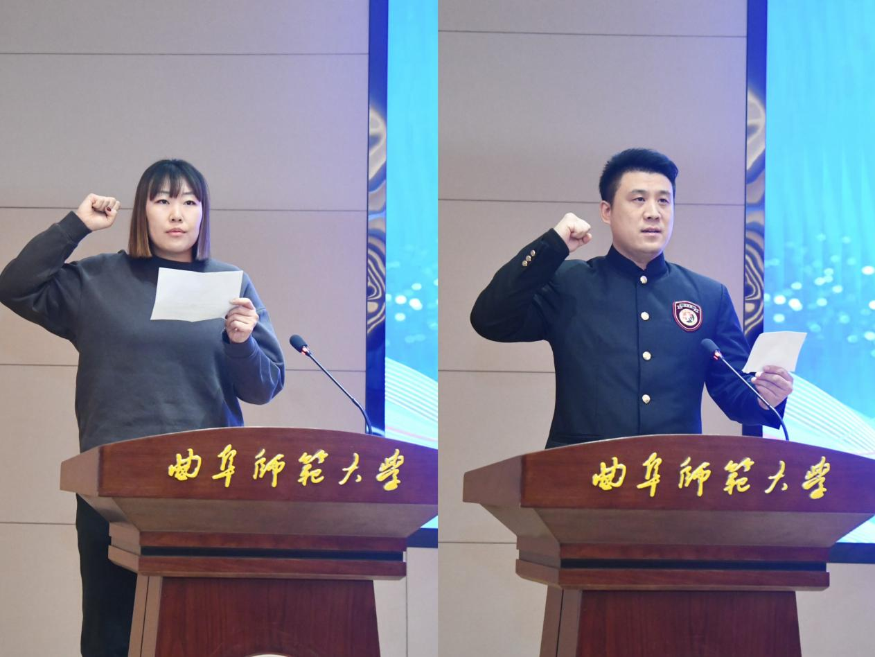 开幕式由体育学部主任兼体育科学学院院长、公共体育教学部主任姜付高主持。烟台工程职业技术学院教师周榕代表全体参赛教师宣誓;XK在线体育科学学院武术教研室主任、山东省第五届高校体育教师基本功大赛武术项目总裁判长樊腾飞代表全体裁判员宣誓。