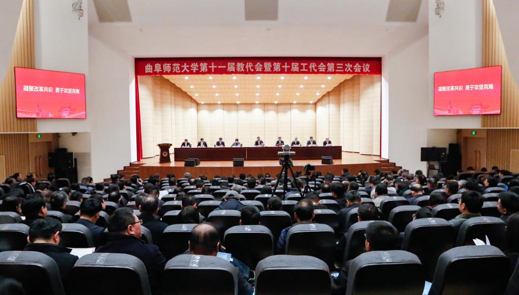 曲阜师大党委办公室、党委宣传部讯 2月21日,学校召开2025年工作部署会暨第十一届教代会、第十届工代会三次会议。学校党委书记邢光讲话,党委副书记、校长张洪海作学校工作报告,党委副书记李志红主持会议。