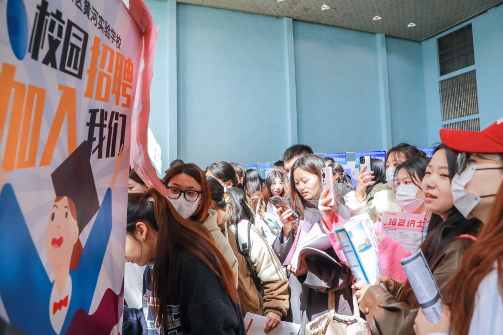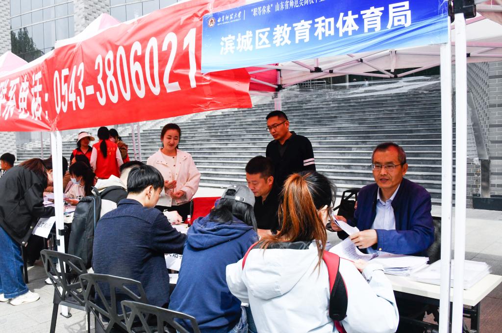 招聘会由山东省教育厅主办、XK在线承办。招聘会现场设置了“二维码墙”为求职应聘提供便捷,应聘学生一键扫码即可了解相应招聘信息并投递简历;设置了直播带岗环节,毕业生辅导员代表走进直播间推介毕业生,用人单位代表直播带岗,取得了多方联动促就业的良好效果。针对学校师范办学特色,招聘活动还设置了教育行业招聘专场,其中滨州市提供教师岗位300余个,吸引2000多名师范毕业生报名应聘。学校为本次招聘会组建了300余名师生的志愿者团队,以细致周到的服务、科学规范的流程为本次招聘会提供了坚实保障;开通人才招聘服务绿色通道,确保了招聘会充分发挥好供需对接、人岗匹配的作用。