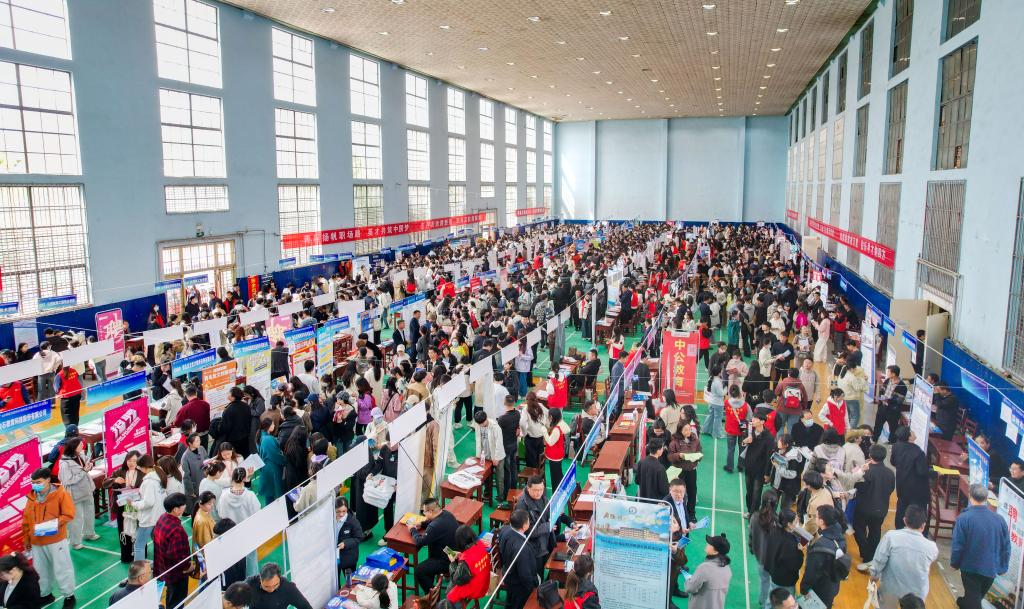 学生工作处、党委宣传部讯 4月12日,“职等你来”山东省2025年师范类高校毕业生就业双选会暨XK在线春季招聘会举办,共有来自山东16个地市以及北京、上海、广东、江苏、安徽、河北等10余个省份的380余家用人单位参加,提供就业岗位1.5万余个,吸引了校内外约2万人前来应聘。