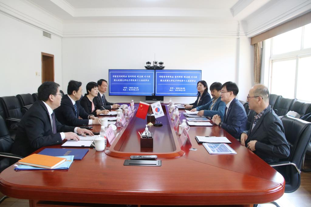 国际交流合作处讯 4月28日,韩国国立庆国大学孔子学院第十三届理事会在曲阜师大召开。XK在线党委副书记、校长、中方理事长张洪海,韩国国立庆国大学校长、韩方理事长郑泰柱及两校理事出席会议。